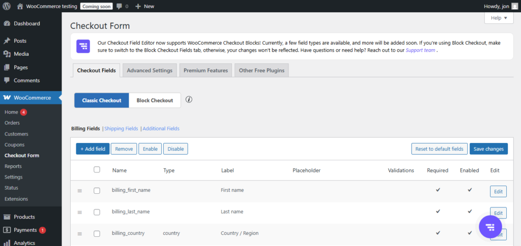 If your store is still using the classic shortcode-based checkout page, or if you need to add custom fields, the Block editor might not be enough.