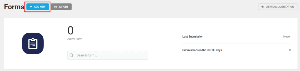 Then go to Forminator > Forms. Click the Add New button to create a new form.