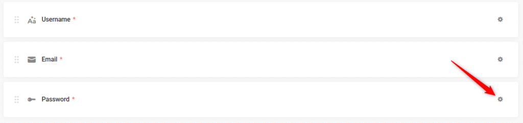 From the form builder, we will select the settings icon next to Password and click Edit Field.