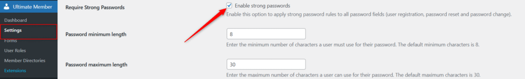 You can also force users to use complex passwords during registration with Ultimate Member. Simply go to Settings > General tab > Users.