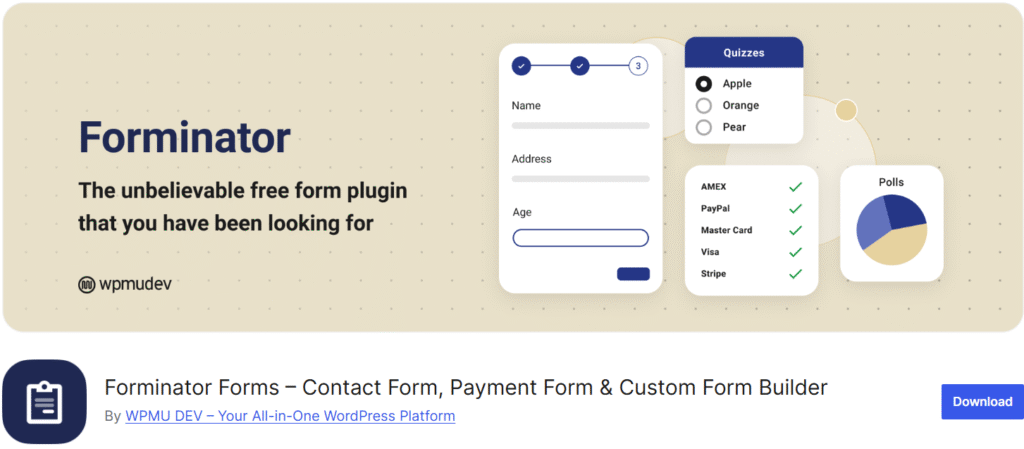 Forminator is a popular and highly customizable form builder for WordPress sites. It allows you to build contact forms, payment forms, and custom forms. Forminator allows you to create conditional fields and make calculations in your forms. It also supports the use of a captcha to reduce spam submissions.