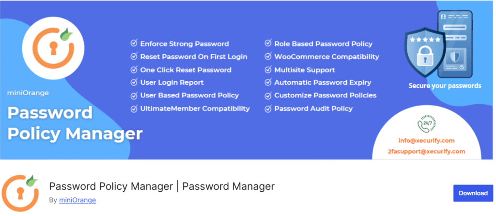 The plugin allows you to create strong password rules, including password strength, auto password expiry, force password change, Password reset, etc. It also allows you to monitor active and inactive users’ activity logs, lock out fraudulent login access, and reset users’ passwords.