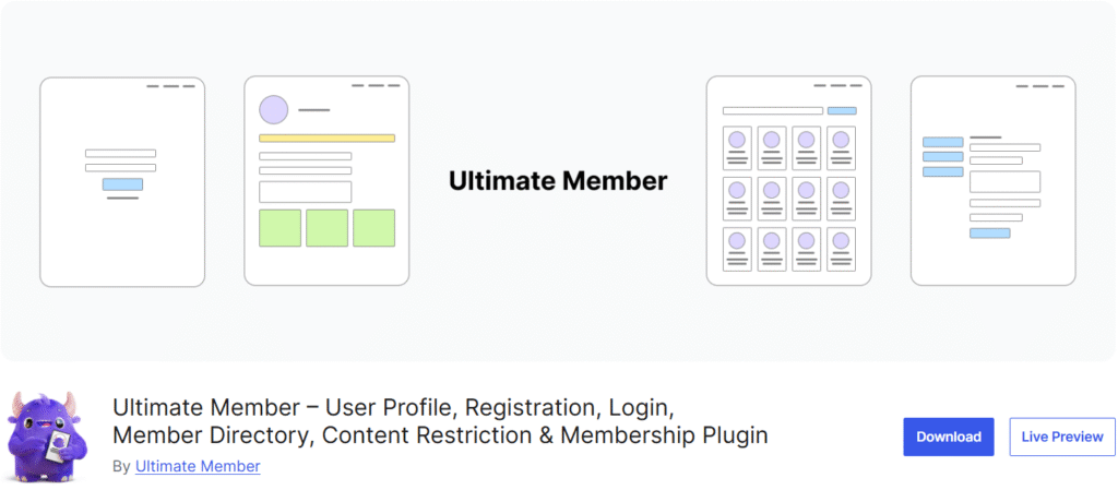 Ultimate Member is a membership WordPress plugin that allows users to sign up and have profiles on your WordPress site.