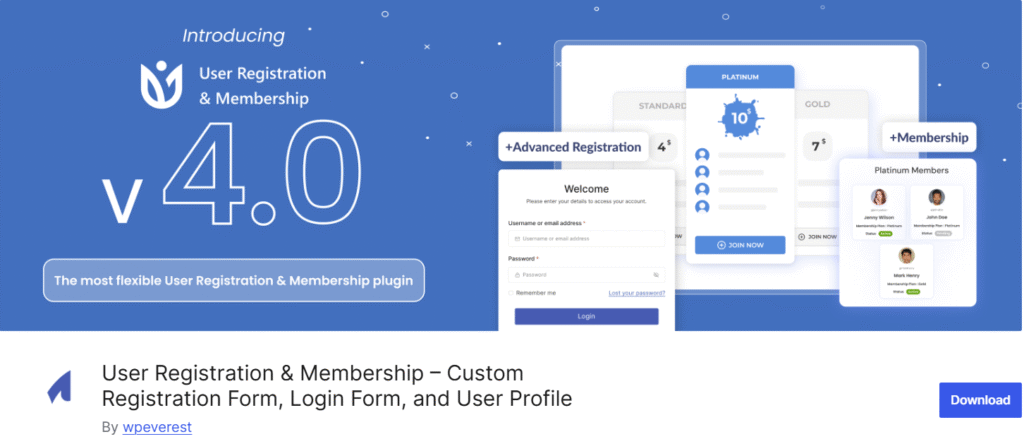 User Registration & Membership is also a membership plugin for WordPress sites. This plugin allows you to create membership websites and dynamic registration forms in minutes.