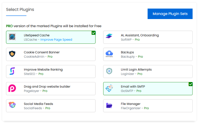 3. Under the “Select Plugins” section, simply check the boxes for the Pro plugins you want.