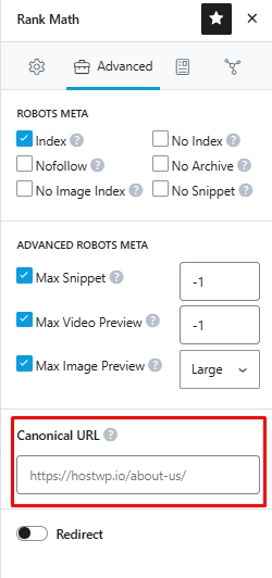- Manual Overrides: If you have a specific duplicate page, go to the Advanced tab of the SEO settings on that post/product and paste the URL of the “Main” page into the Canonical URL field.